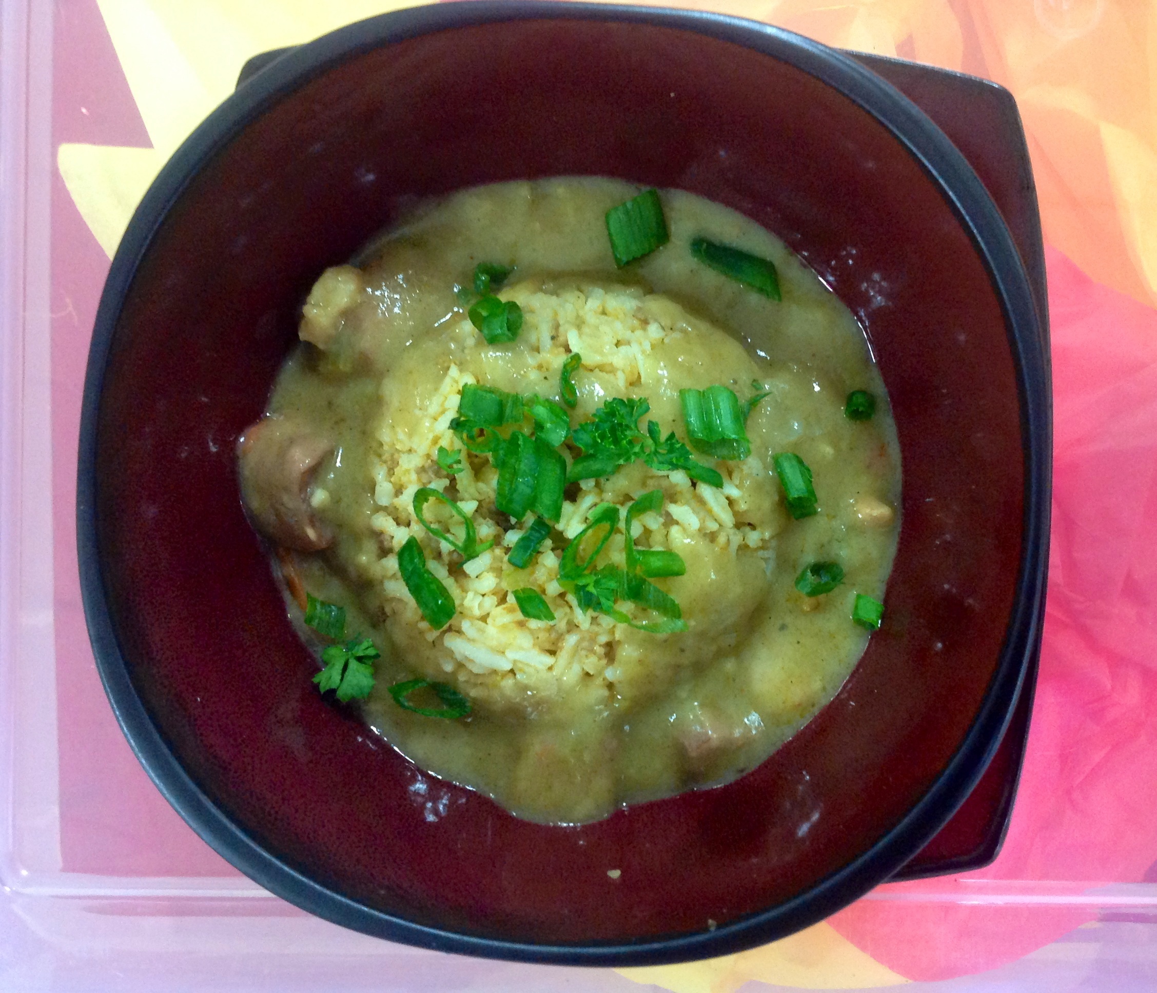 Our chicken and sausage gumbo, with dirty rice. How dirty? It wouldn’t get a “G” rating, let’s put it that way.