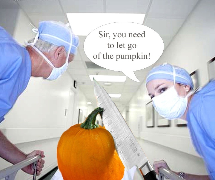 After a quick trip to the emergency room for stitches and some light skin grafting, you could return home and set your jack-o-lantern on the porch, where it would remain until gravity and molecular breakdown eventually caused it to collapse in on itself like the birth of a new star — appropriately enough, usually around Christmas time. Continue reading No pumpkin-carving experience is complete without a near-fatal knife wound