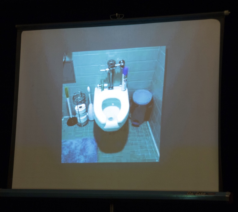 Because I was asked not to be involved in any of the preparations (they’ve seen my work), I had no idea what to expect when I got there. My publisher at Port Hole Publications, Ellen Traylor, along with my wife and some friends, put the stage together using items they had sneaked out of the house — things that, as Ellen said, “best describe Ned.” For this reason, I’m glad our toilet is bolted down…