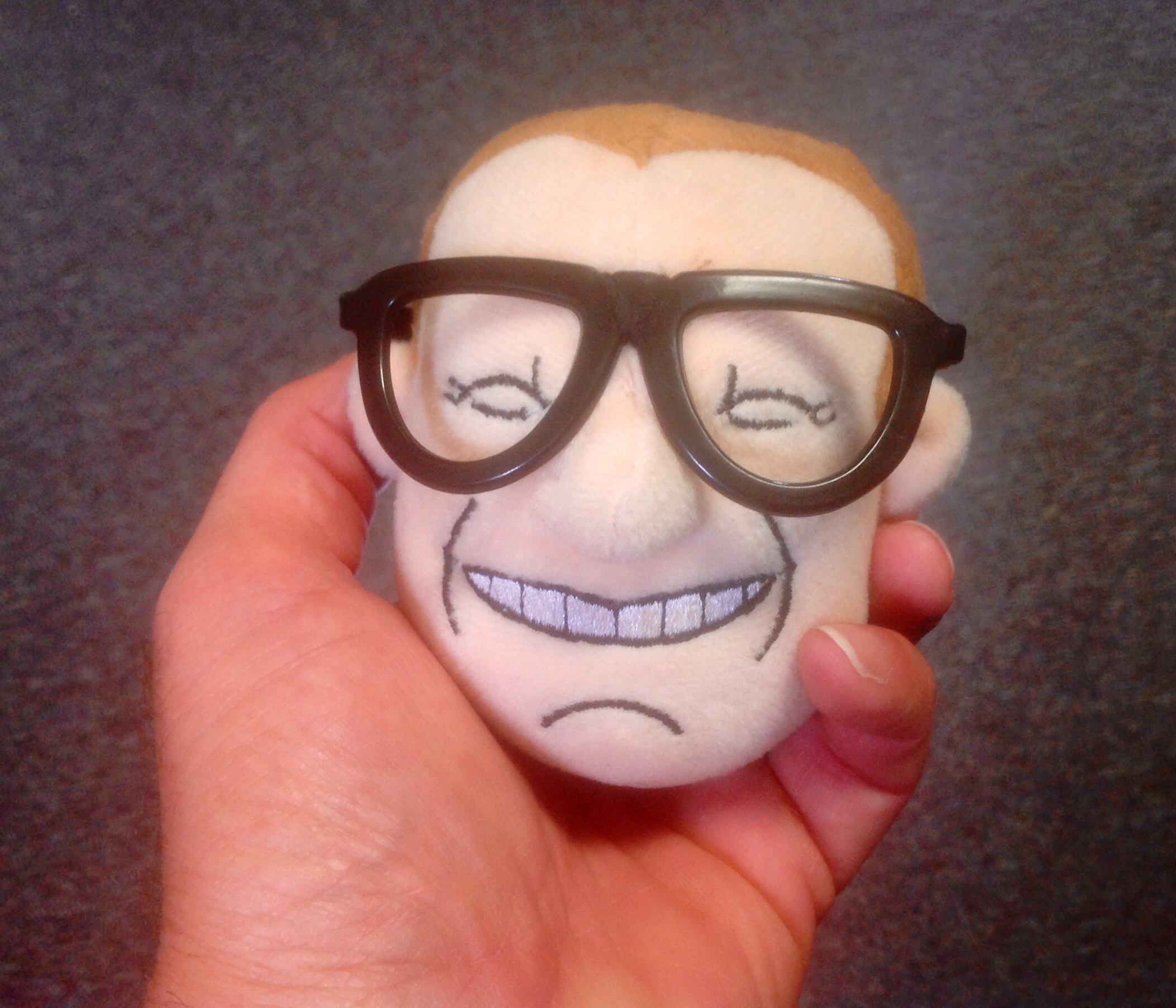 Following that logic, my son has a plush toy that resembles Drew Carey’s head (I believe this was done on purpose) which, when you toss it against something, says: “Boy, my head hurts.”