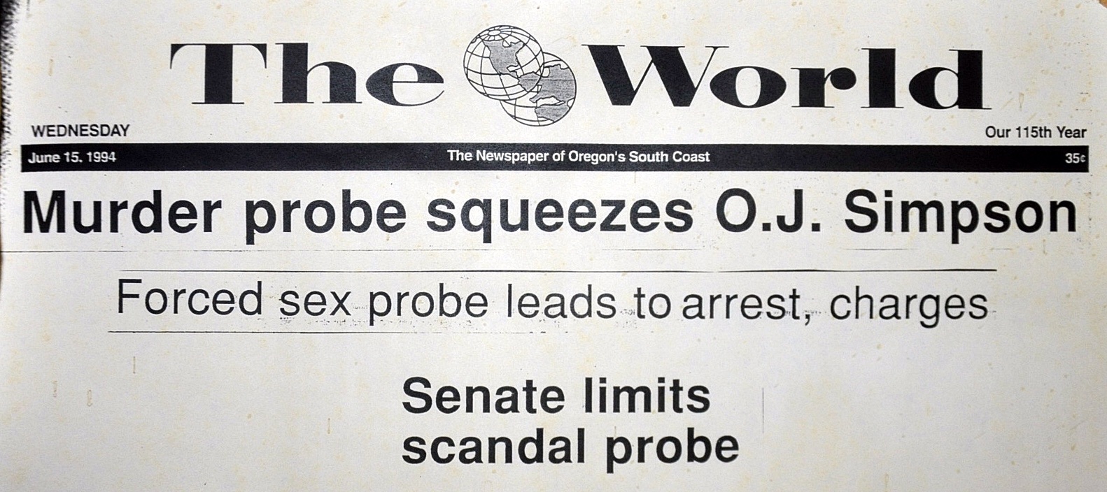 This week, we begin with a fellow Oregon coast newspaper — The World — which seemed, like a lot of newspapers back in 1994, to have rediscovered the word “probe,” and how it can be used as an action word or noun, depending on how it’s, um… inserted. And while most newspapers “probed” sparingly, The World appeared to relish any opportunity for a good probing. As you will see, this is actually a collection of headlines that appeared in The World all in the same week — earning it a hallowed place on The Door.