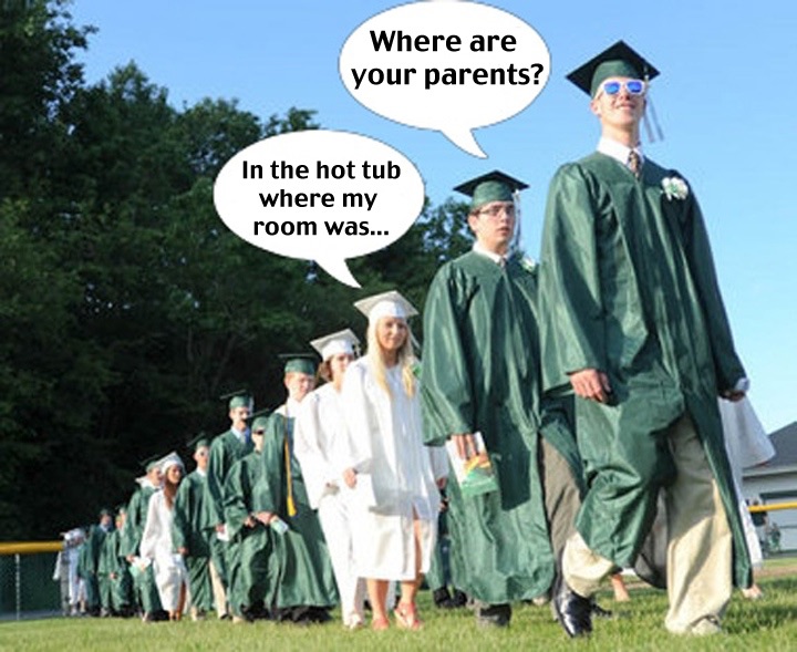 As you cross the stage to receive your diploma, remember that you’re crossing a brand new threshold in your young life. That’s because, in most cases, your parents have already arranged for the contents of your room to be hauled onto the front lawn and sold, probably during the graduation ceremony itself.