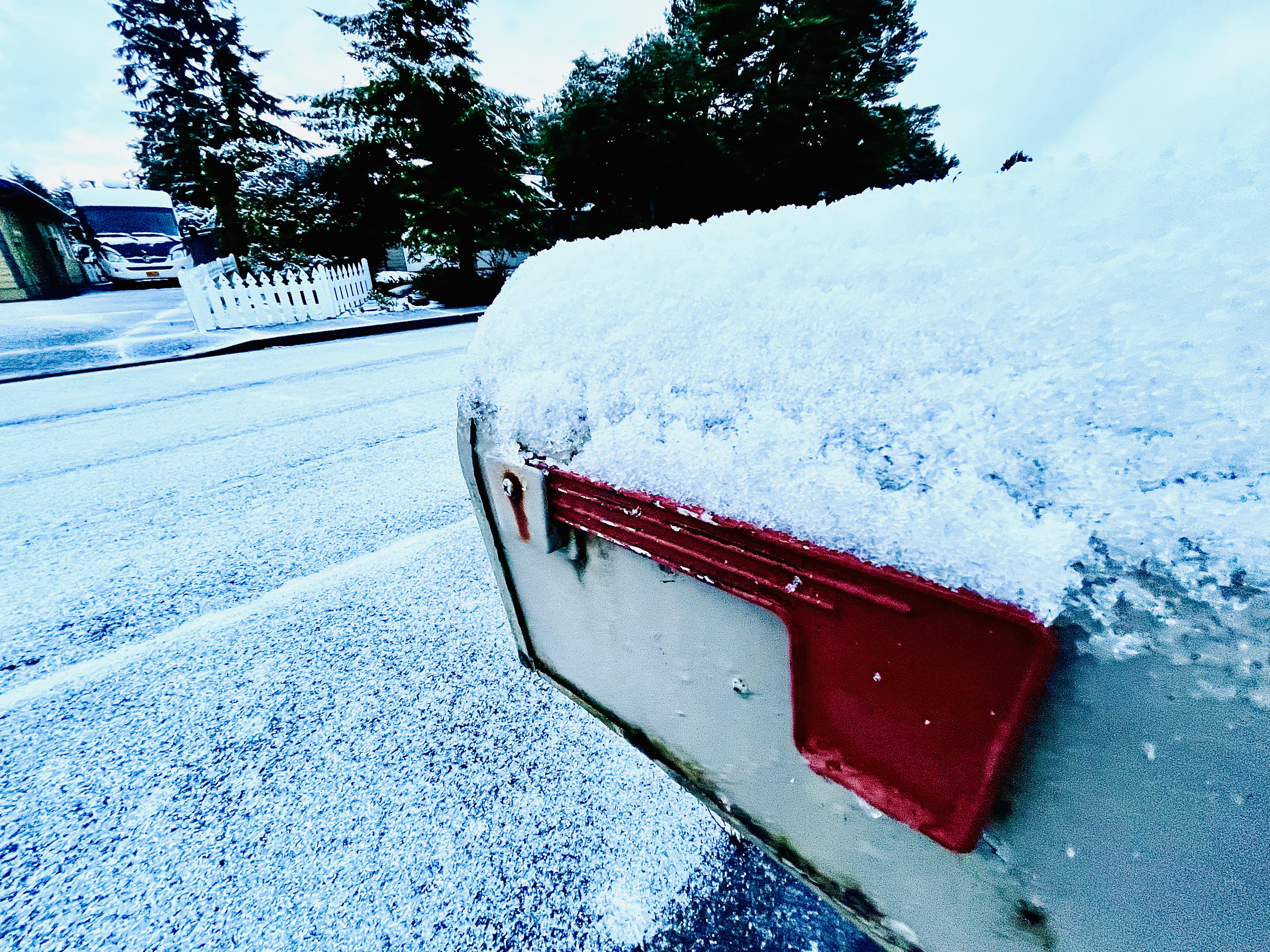 We don’t get much snow here on the Oregon coast. For example, the closest thing we have to a snowplow is our neighbor’s Ford Fiesta, which has a plastic sand disc tied to the front bumper, and can be used for pushing snow or a directionally-challenged elk out of the way.